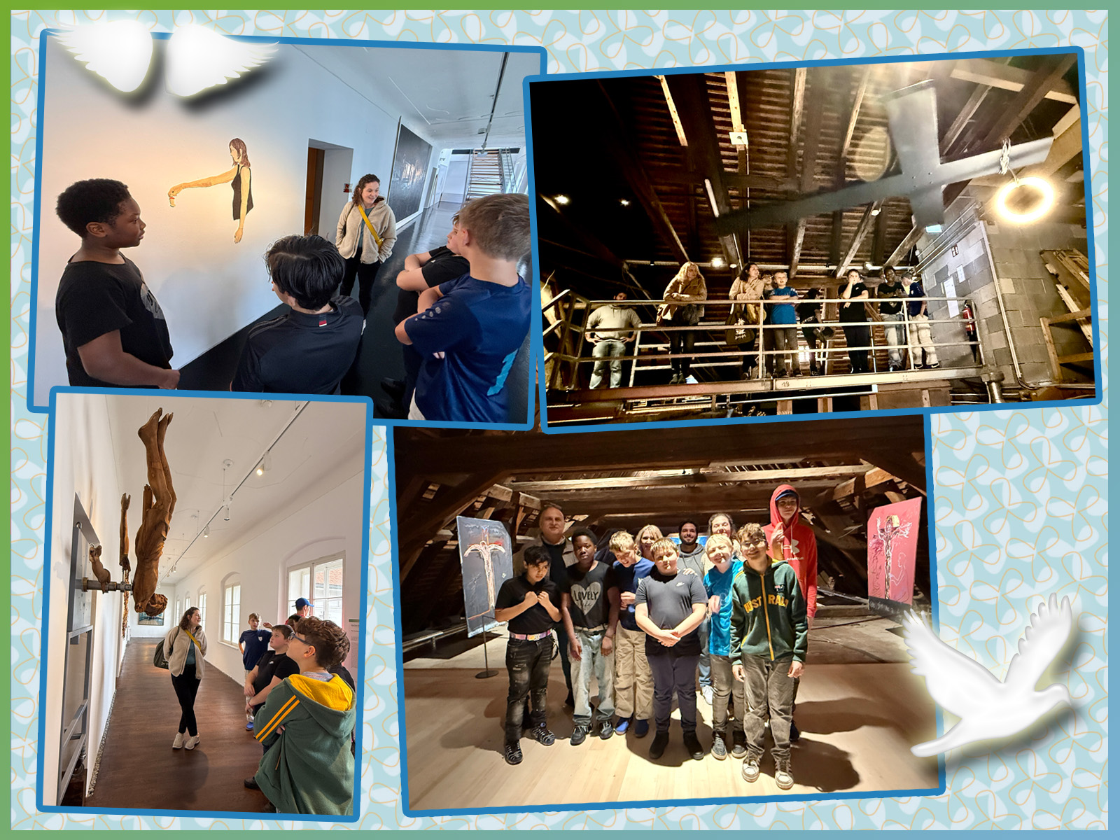 Im November durften wir die Ausstellung „Gott hat kein Museum“ besuchen. Hendriks Mama ist Künstlerin und ermöglichte uns eine exklusive „Privat“-Führung durch die Räumlichkeiten des KULTUMs – des ehemaligen Minoritenklosters. Wir lauschten gespannt den Erklärungen und wundervollen Geschichten, konnten sehr kreative Werke vieler Künstler bestaunen und stellten fest, dass auch ein Ausflug ins Museum sehr bereichernd sein kann. Bei der anschließenden Reflexionsrunde mit Frau Aue-Sadikaj wurden wir mit Soletti und Getränken verwöhnt. (Text: Daniela Sonnleitner, BEd /MS1)